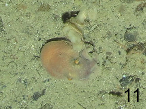 Other predators of the deep we have met include the octopus (photos 11 & 12), who we estimate to be almost 5 cm in length.