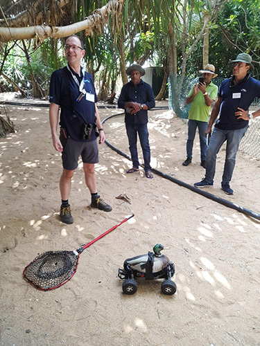 Using 'robo duck', a robotic duck that simulates the movement of a wild bird, participants ran through a series of field scenarios to learn how to stabilise oiled wildlife and provide basic essential care during the first few days post-capture. The course ended with an overview of lessons learned from different case studies and how these could be applied to Sri Lanka.